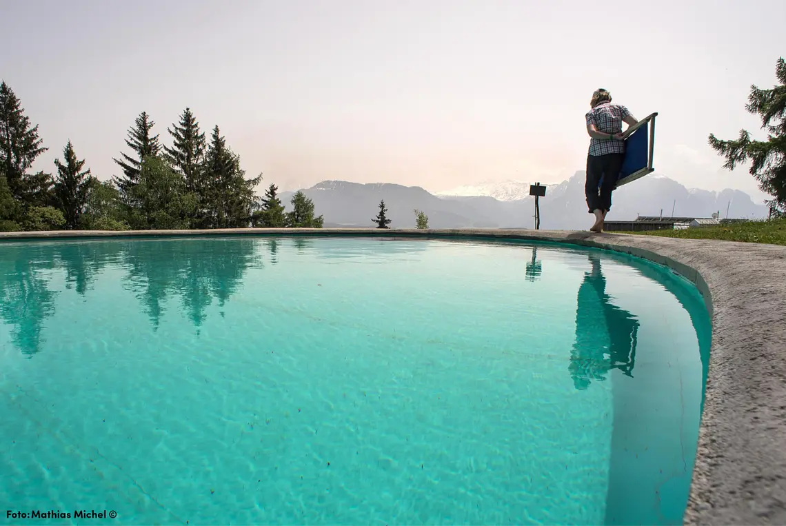 "Preserve everything in the spirit of the mountain" - Johanna Settari's third rule actually says it all. No superfluous technology in the rooms, the rooms cannot be heated, but simple hot water bottles are used for a cozy, warm feeling under the covers. The water is warmed up with solar cells or a wood stove and the pool is fed by mountain spring water.