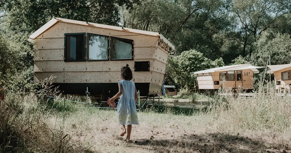The destinature village is a nature hotel and outdoor holiday village. Located on the outskirts of the idyllic village of Hitzacker, not far from the Elbe, in the middle of the Lower Saxon Elbtalaue biosphere reserve. Overnight huts and mobile covered beds as well as an organic bistro and a sustainable sanitary building were built on a former garden plot. Old trees and large bushes enliven the area as well as fruit trees, from which you can reap plenty in late summer.