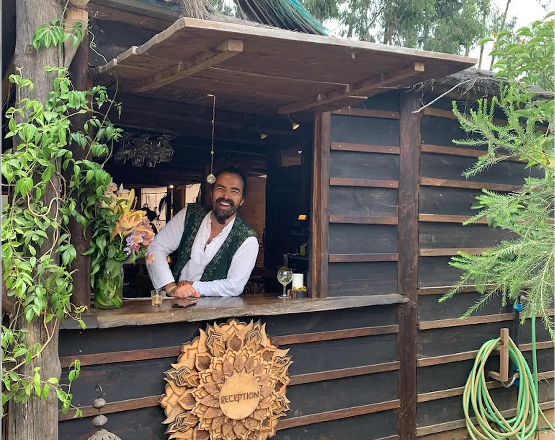 Auf Plattformen stehen die großen Zelte, Jurten und Tipis mitten im Tal. Alle hölzernen Konstruktionen und Reetdächer, ebenso wie den großen Freiluftpavillon, hat Francisco gemeinsam mit Handwerkern aus der Umgebung gefertigt. Dabei stammen alle Materialien aus der Region. Einen Großteil der Einrichtung der Zelte – etwa Betten, Nachttische, Stühle und Spiegel – haben Francisco und Claudia von ihren zahlreichen Reisen aus Indien, Vietnam, Thailand und Marokko mitgebracht. Auch dabei haben sie darauf geachtet, dass die Möbel aus lokaler und nachhaltiger Produktion stammen.