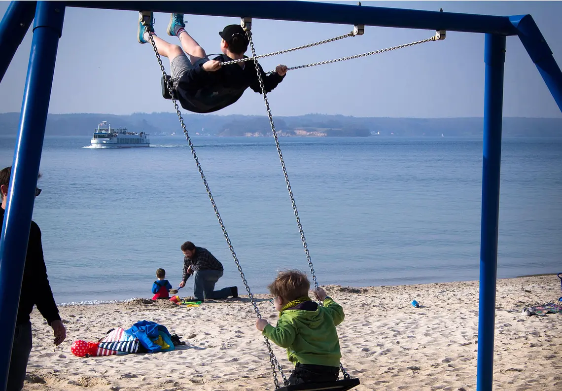 Auf dem Gelände laden zahlreichen Sitzmöglichkeiten dazu ein das schöne Ambiente, umgeben von Gräsern, Schilf, Strandflieder und Lavendel zu genießen. Die kleinen Gäste freuen sich über den Spielplatz mit Piratenschiff, Dreier-Turn-Reck, Balancierspiel zum Toben sowie zwei Matschbecken zum Burgen bauen. Toll für Jung und Alt ist die aufgeschüttete Meeressandfläche: einfach die Füße in den Sand stecken und das Urlaubsfeeling genießen.