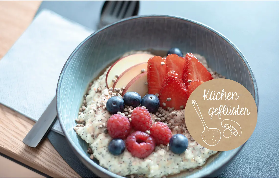 Die Lebensmittel, die serviert werden, sind regional, saisonal und in Bio-Qualität. Entweder werden die Lebensmittel aus einem Biomarkt bezogen oder aus kleineren Manufakturen, die sich auf altes Handwerk besinnen, wie etwa das Brot von einem Einzelbäcker mit hohem Qualitätsanspruch. Teile des Frühstücks bereitet die Gastgeberin selbst zu, wie etwa Kuchen und diverse Eierspeisen. Es gibt auch vegetarische Angebote.